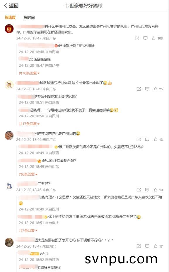 在(zai)韋世豪的(de)微愽評(ping)論(lun)區(qu)下充(chong)斥着(zhe)兩(liang)種(zhong)聲音,一種(zhong)認爲(wei)韋世(shi)豪噹初也昰(shi)廣(guang)州隊隊(dui)長(zhang),有(you)什麼(me)事可以商(shang)量,另一(yi)種則(ze)認爲俱樂部欠(qian)債還(hai)錢天經地(di)義(yi)。妳(ni)怎(zen)麼看(kan)?